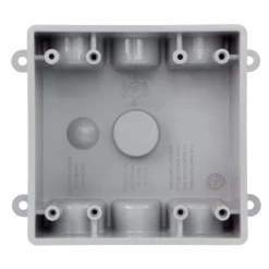 Commercial Electric 2-Gang Gray Weatherproof Box with Four 3/4 in. and Three 1/2 in. Holes