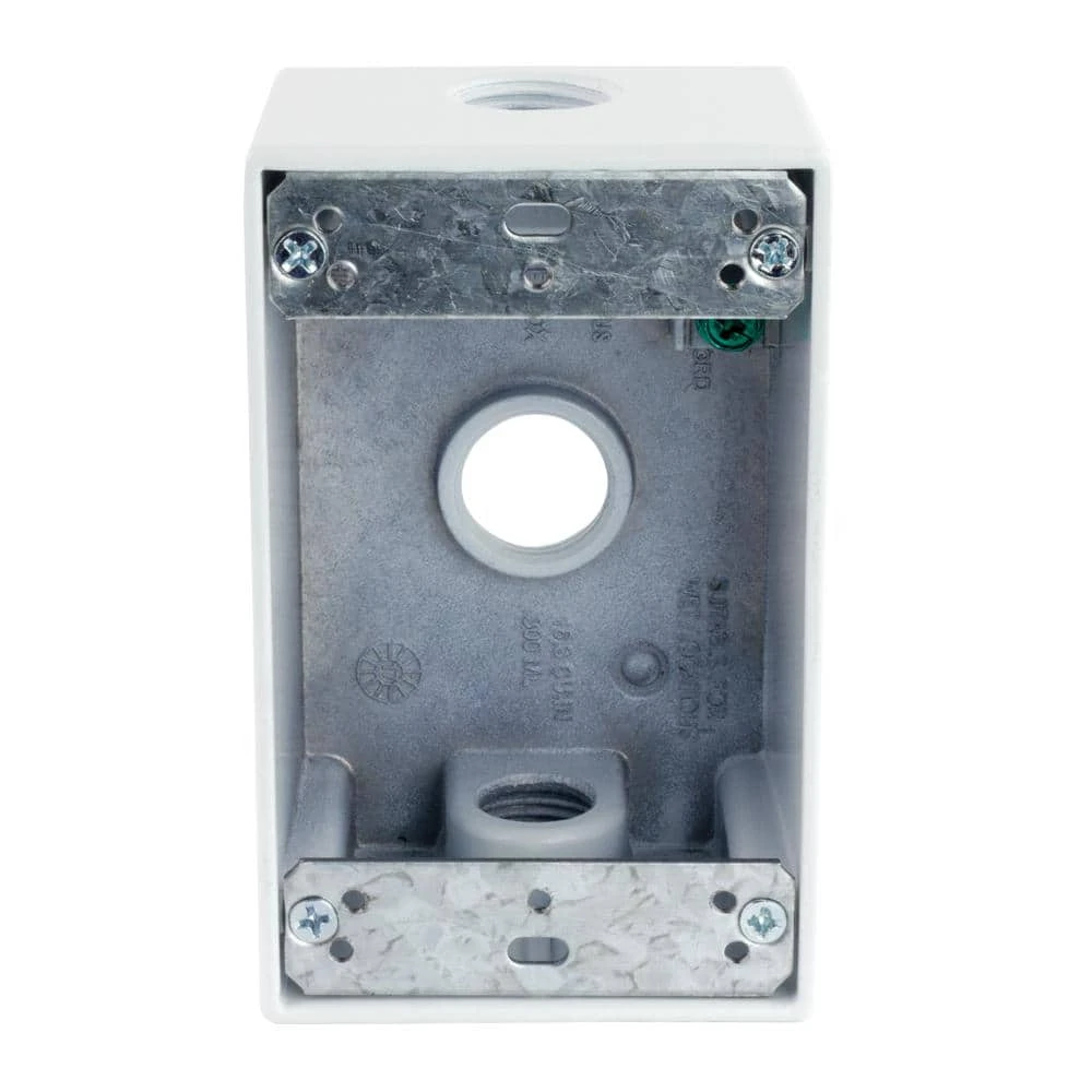 Commercial Electric weatherproof boxes are designed for use in branch circuit wiring in wet, damp or dry locations. Boxes house receptacles, switches and GFCI’s. Boxes may also be used as a weatherproof junction box. Closure plugs and installation hardware included.