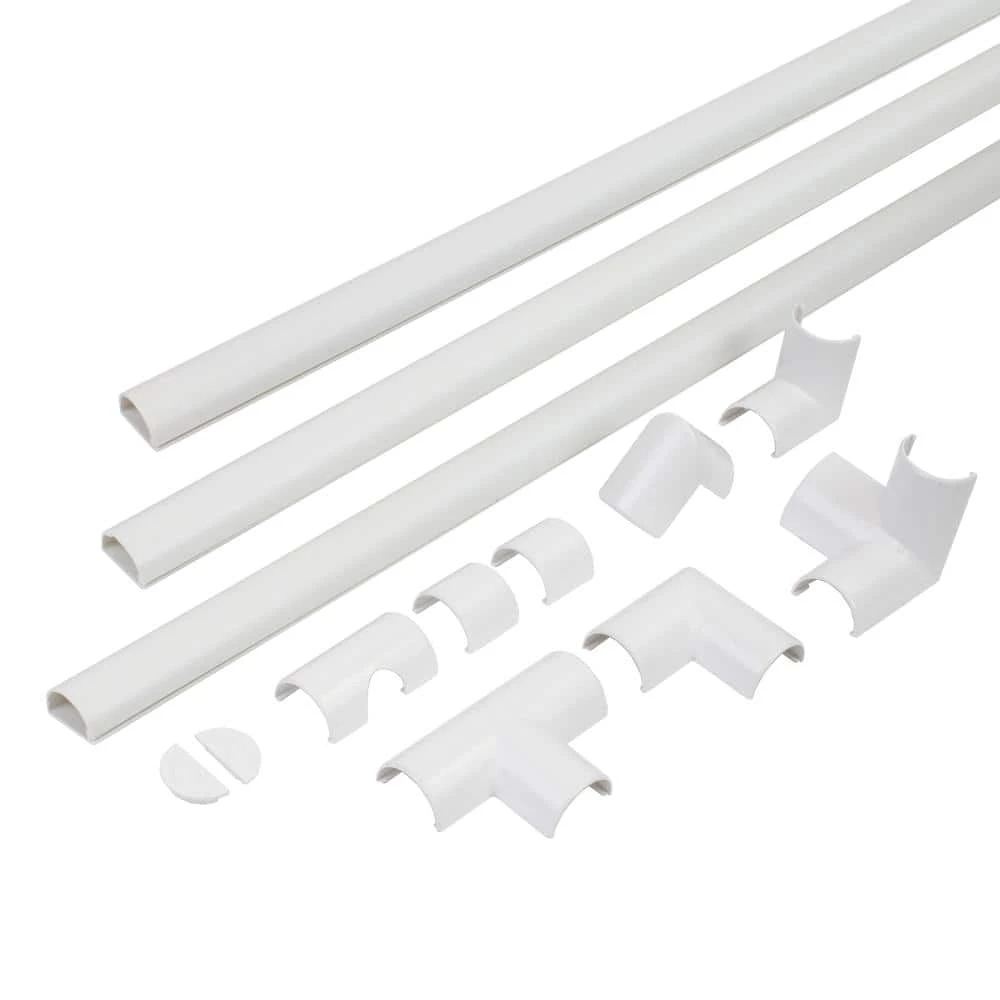 Nonmetallic channel is engineered to protect cords and cables while maintaining the elegant appearance of your home. Run cords and cables where you need them without having to see them. The 1/2 round channel can match any decor to insure a complete finished look to any installation. This kit contains 3 ft. to 4 ft. channels and multiple accessories to complete many projects.