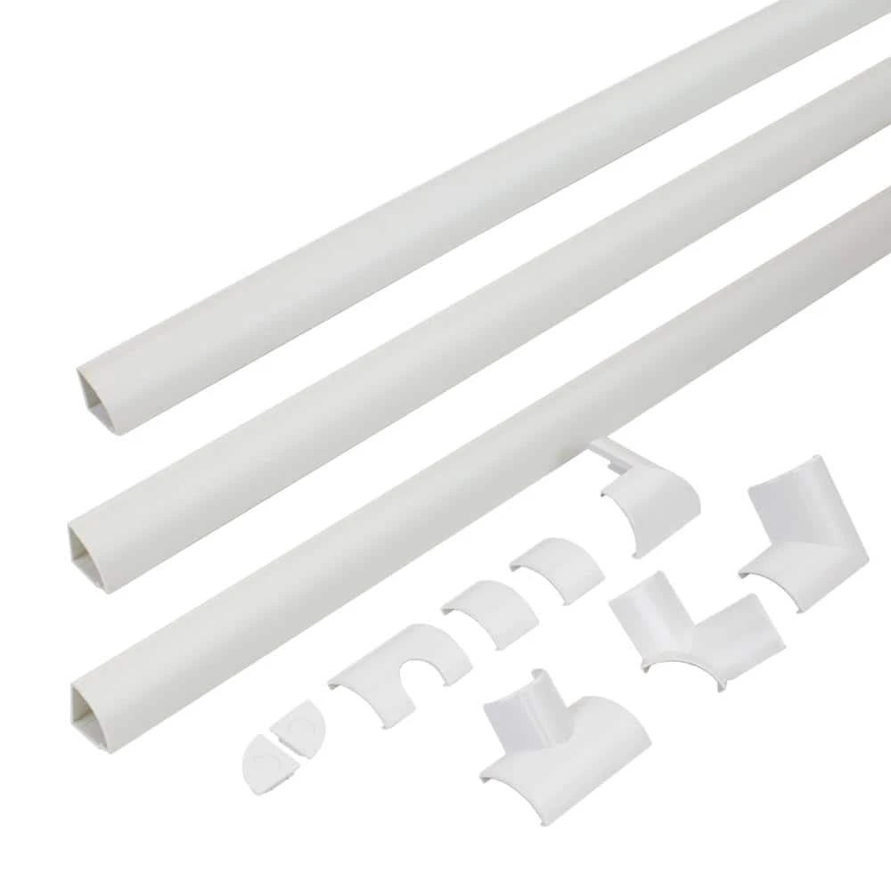 Nonmetallic channel is engineered to protect cords and cables while maintaining the elegant appearance of your home. Run cords and cables where you need them without having to see them. The 1/4 round channel can match any decor to insure a complete finished look to any installation. This kit contains 3 ft. – 4 ft. channels and multiple accessories to complete many projects.