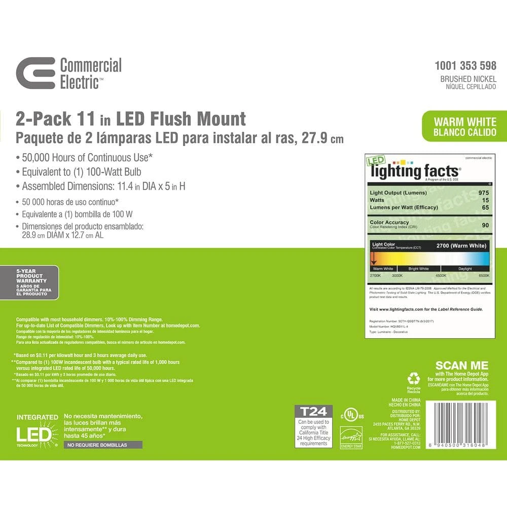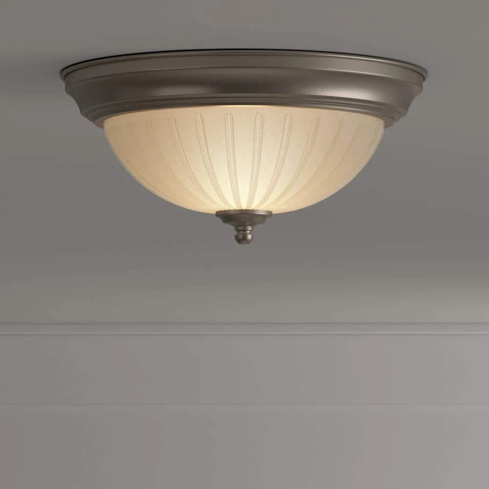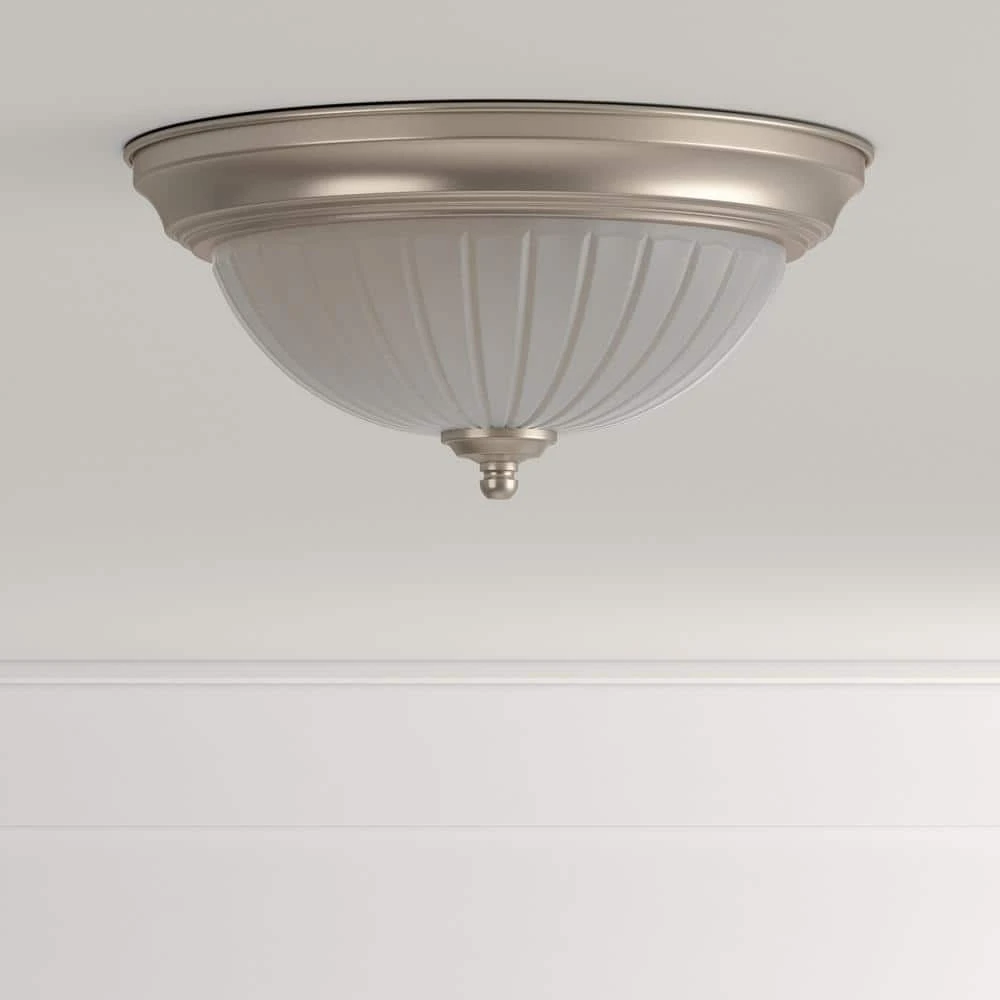 Bring a stylish, bright glow anywhere you need additional lighting with this pair of 11 in. LED flushmount with a brushed nickel finish. The finish contrasts beautifully with a frosted melon glass shade, adding eye-catching beauty to your dining room, bedroom or kitchen. Long-lasting LED technology makes the lights hassle-free, with a traditional look that complements any design scheme.