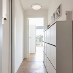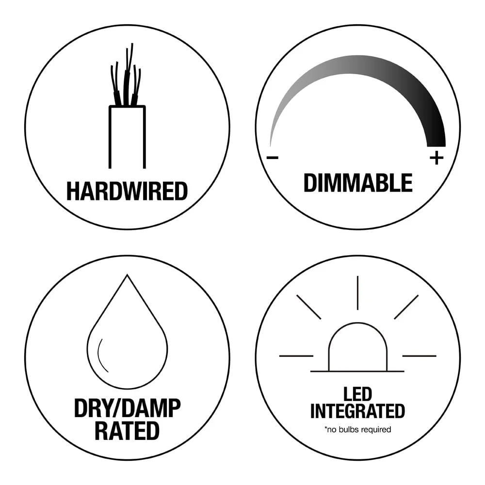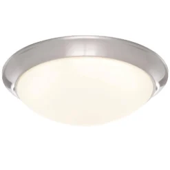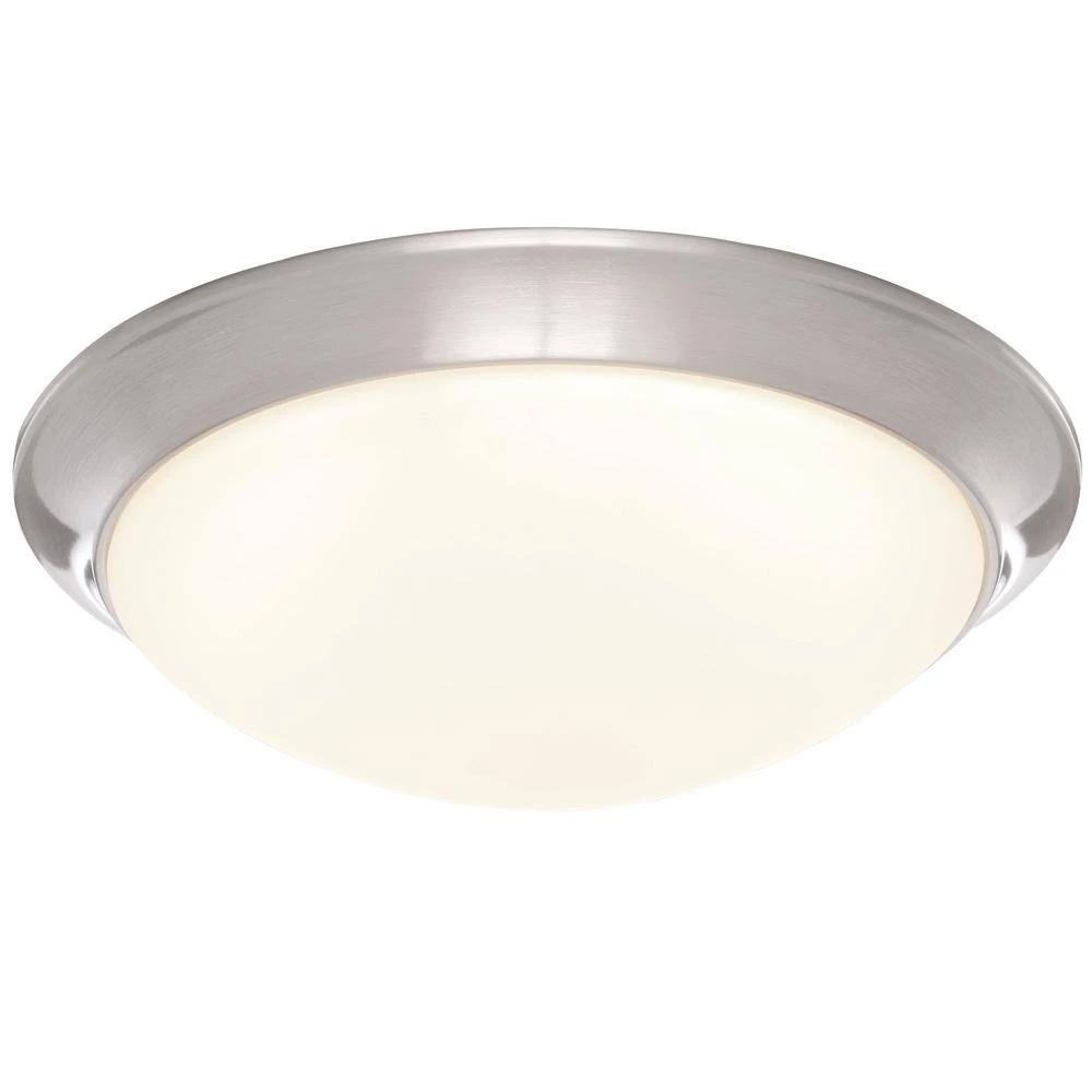 The Commercial Electric Brushed Nickel Finish 11 in. LED Flushmount with frosted white glass is designed to look great in any room while save you money at the same time. This dimmable, 11 in. round ceiling mounted light features a brushed nickel finish and sleek white glass diffuser. The integrated LED light source reduces energy consumption by 70%. Because there are no bulbs to replace, it saves you time and money.
