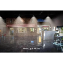 This Commercial Electric 11 in. Low Bay with Up light is a durable and efficient lighting solution for low ceiling applications like parking garages, gas stations, workshops, retail spaces and more. Included uplight allows the fixture to be used in multiple configurations. Main light only mode illuminates the space below with 9000 Lumens and 5000k bright light. Up light only mode provides accent lighting with 900 Lumens. You can also combine both to give light and a sense of security to the entire room.