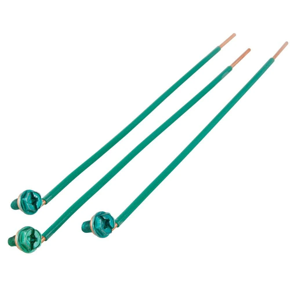 - Grounding pigtail with a screw on 1 end and a stripped end on the other end for quick connections of grounding wires