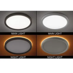 Commercial Electric’s Low Profile 13 in. LED Flush Mount ceiling light with 2 interchangeable trims is an innovative Modern fixture with the latest energy-efficient LED technology. Choose between White or Oil Rubbed Bronze trims to compliment your room’s decor and prior to installation, you choose color of light between Soft White, Bright White or Daylight using the slide switch on the back of the fixture. This fixture also has a unique Night Light feature which emits a soft Amber glow behind the fixture providing a warm ambiance for your space. You activate it by an extra toggle gesture from your wall switch, On/Off/On. It emits 1350 Lumens of brightness using only 17-Watt of electricity reducing energy consumption all year round. Installation is a breeze using the TwistFit mounting method, mounting plate to junction box, make wire connections, twist to secure in place. (details in instructional manual). Ideal applications are kitchen, pantry, bedrooms, bathrooms, closets, stairways, hallways, basement, laundry room, craft room, playroom, den/office, retail store or boutique.