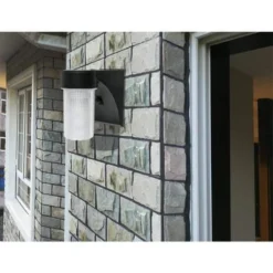 The Commercial Electric 17-Watt Black Outdoor LED Dusk to Dawn Jelly Jar Wall Mount Area Flood Light is a high-performance, low-maintenance, dependable and reliable security lighting solution. Suitable for wall mounting and replaces 100-Watt incandescent or halogen area lights. This low-profile area light is ideal for residential and commercial applications such as entrances, patios, walkways, apartment complexes, outlet exteriors, doorways, storage areas and hotels. 50,000-hour lamp life and the ENERGY STAR certification gives peace of mind that the areas where this light is installed will be illuminated for years to come at a fraction of the cost current lighting technologies provide.