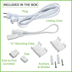 - 5 ft. plug-in power cord, 12 in. linking cable, End-to-End connector cap and screws are included