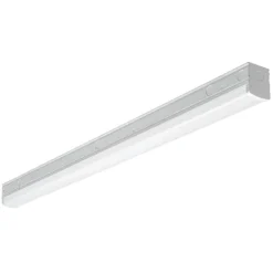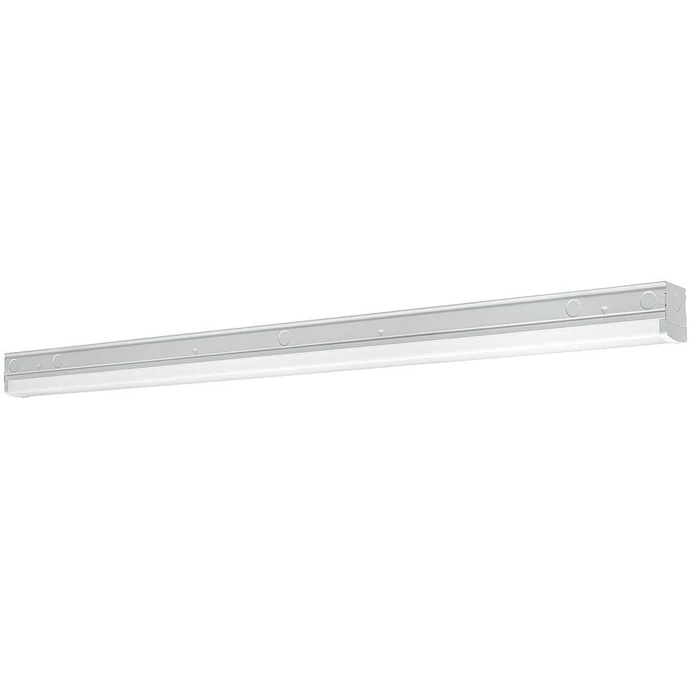 Commercial Electric’s 4 ft. High Output Linkable Integrated LED Strip Light replaces outdated fluorescent lights with cool energy-efficient LEDs. It emits powerful 5500 Lumens of brightness with 4000K Bright White light output using 50-Watts of electricity and dimmable. This strip light easy to install with all the wiring connections located inside the body of the fixture. It is linkable up to 8 units and offers multiple lighting configurations to maximize your lighting needs. Use mounting brackets to create the optimal lighting for your workspace: “T”, “L”, “X”, Parallel or Adjustable brackets. (each sold separately). Suggested applications are garage, repair shop, store aisles, open concept office, warehouse aisles, showrooms or small loading docks and more.
