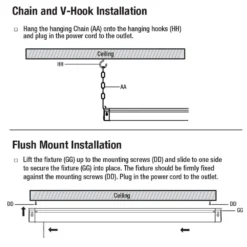 - Fixture design equipped for hanging by included V-hook and chain or flush mount with included wall anchors and screws with distance between anchors at 46.2 in.