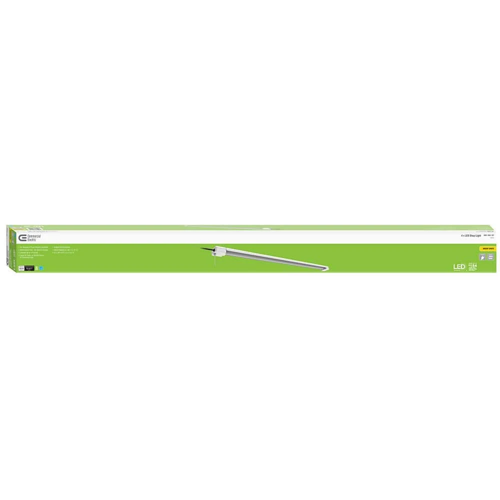 Commercial Electric’s 4 ft. Single LED Utility shop light uses 30-Watt and comes fully assembled with an ultra-light weight design that can be used in hanging or flush mount installation. This LED Light lasts up to 50,000 hours, and emits a bright light of 3000 Lumens which is equivalent to a standard two lamp fluorescent fixture. This no-humming LED offers a bright white-light and adds instant full brightness to any dark lit area even in sub-zero temperatures. There are no lamps to dispose of or replace with this 4 ft. 1 lamp LED shop light, making it ideal for any garage, game room, basement, work bench, closet and or cabinet. Includes two 6 in. hanging wire harnesses, a convenient On/Off pull chain with 36 in extension chain with bell, a 5 ft. plug-in chord for power or likability on one end, and an outlet receptacle on the opposite end to allow up to 4 units to be linked together. Durable smooth edge polycarbonate housing and back plate provides the-light you need along with a sleek modern design.