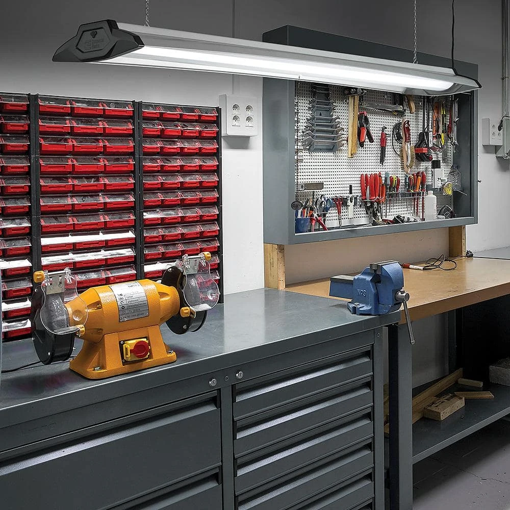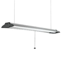 Commercial Electric 4ft. High Output LED Linkable Shop Light with Pull Chain is designed to replace outdated fluorescent lights with a crystal-clear energy-efficient integrated LED fixture. For ease of installation, use the 5ft. Power cord with 3-prong plug into wall or ceiling outlet and is linkable up to five 4ft. units (hardware included). This shop light provides crisp and vibrant illumination with no yellow discoloration or dark spots over time. With its superior long-lasting light engine, our shop light is maintenance free with no bulbs required! Great for garage, basement, workshop, storage room, utility room or craft room.