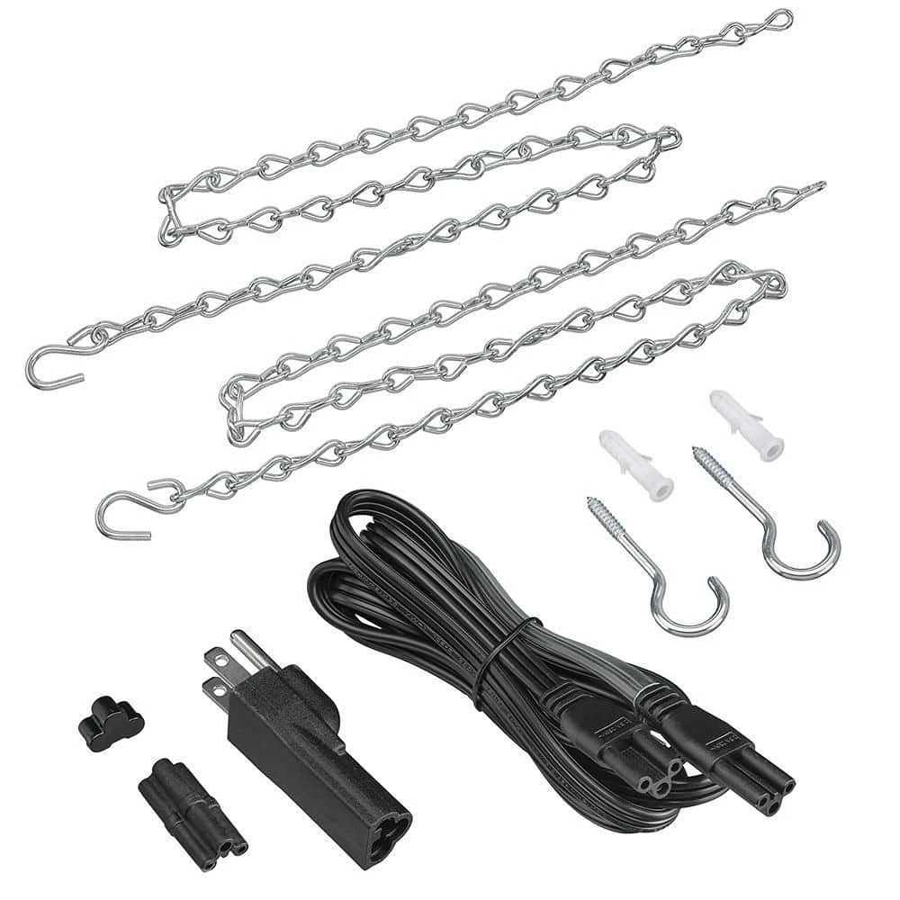 - Included: Electrical Plug Adapter, End-to-End Connector, End Cap, 5ft. Power Cord/Linking Cable, (2) Mounting Chain with “S” Hook, Cable Tie, (2) Drywall Anchor and (2) Hook Screw