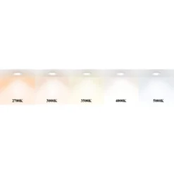 The Commercial Electric 5/6 in. Color temperature select LED downlight is an easy way to upgrade your existing can lights to the sleek look of recessed lighting and LED energy efficient technology. These LED downlights are compatible with most dimmer switches and are equipped with a unique color temperature (CCT) changing technology. Now you can select your color temperature depending on your needs or preferences with the flip of a switch located on the back of the downlight. Test different color temperatures before installation and never be dissatisfied with CCT again. Color temperature of these LED downlights ranges from Warm White (2700K) to-daylight (5000K), with 3 options in between: Soft White (3000K), Neutral White (3500K) and Bright White (4000K). Using only 9-Watt of energy but produce brightness comparable to a 65-Watt incandescent bulb, these LED downlight bulbs are estimated to cost only $1.44 per-year to operate. Additionally, these LED downlights are rated to last for 50,000-hours or approximately 34-years. That is 50 times longer than a traditional incandescent BR30 lightbulb, which these downlights are used most commonly to replace. Compatible with most 5 in. and 6 in. recessed housings and equipped with a medium (E26) socket base adapter for easy installation.