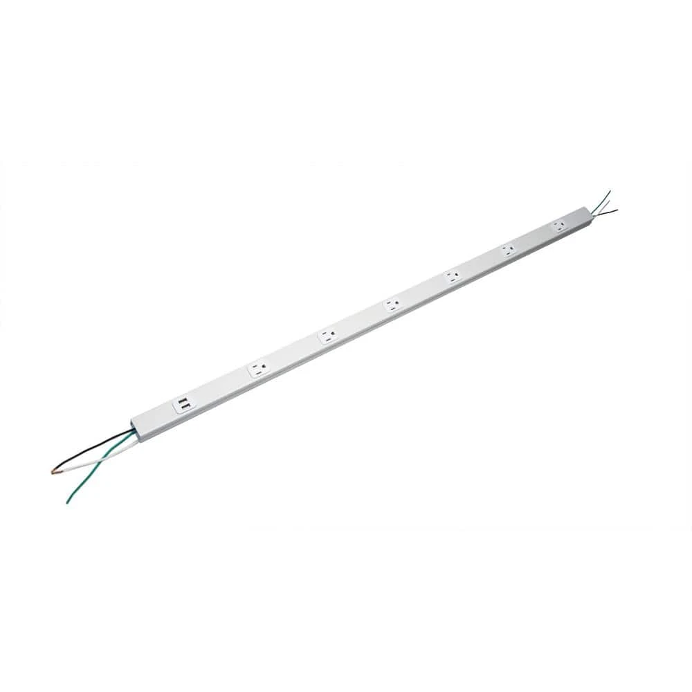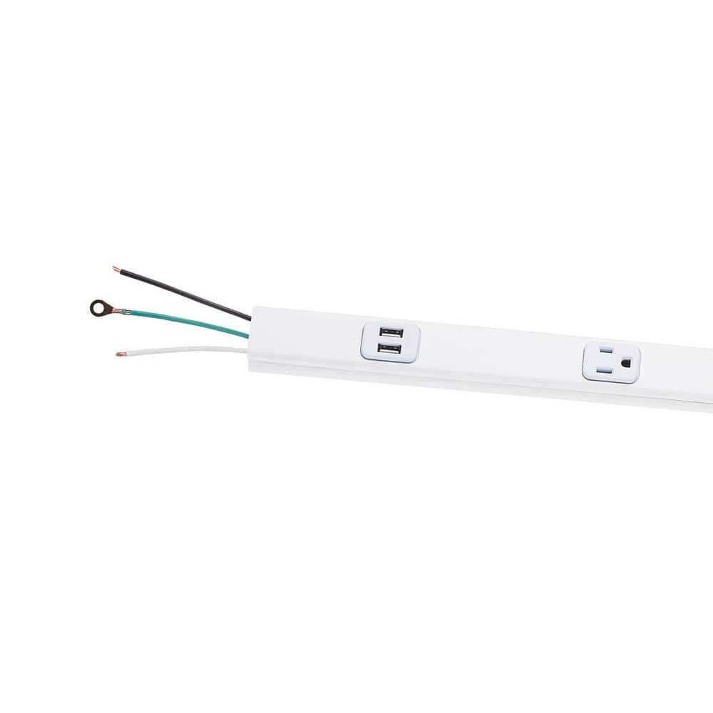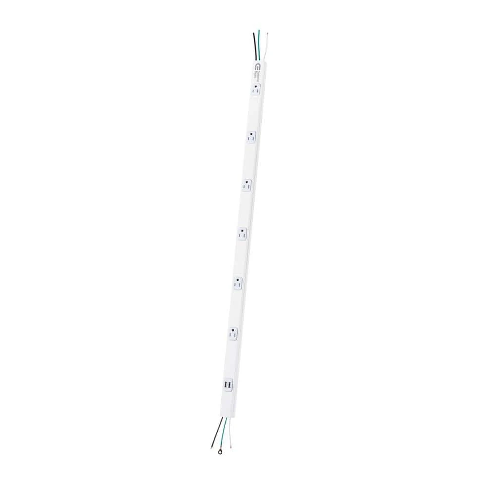 This product is perfect for use in workshops, garages, kitchens, as well as being ideal for homes with small children. Total of six 15 Amp receptacles and 2 USB(2.4 amp shared). Low profile fits into tight spaces and is aesthetically pleasing with its white finish.