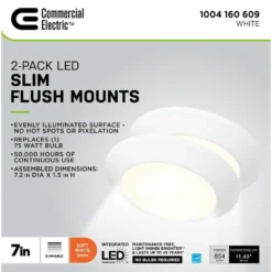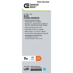 This Commercial Electric LED flush mount has a great transitional design with beautifully constructed clean lines. Finished in White, the low profile design makes it a great addition to any room. The frosted acrylic lens provides pure even illumination. With the easy to install clip-in mounting bracket installation is quick and easy.