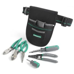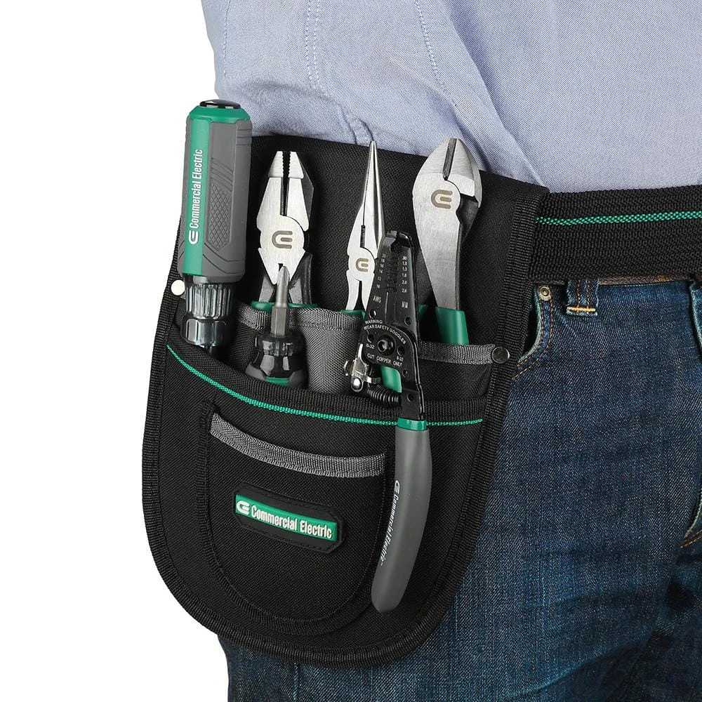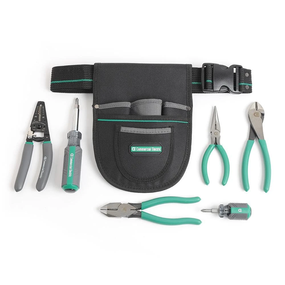 The Commercial Electric 7-Piece Electrician’s Tool Set is a great assortment of electrical tools that are perfect for the home, workshop or jobsite. The included 6 pocket tool pouch keeps tools organized and readily available with the convenient waist strap attachment. No more trips up and down the ladder constantly searching for tools.