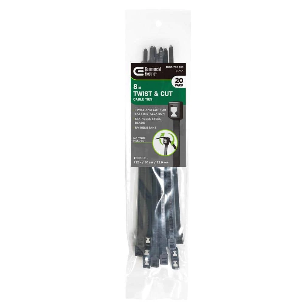 Commercial Electric 8 in. Twist and Cut Cable Tie, Black (20-Pack)