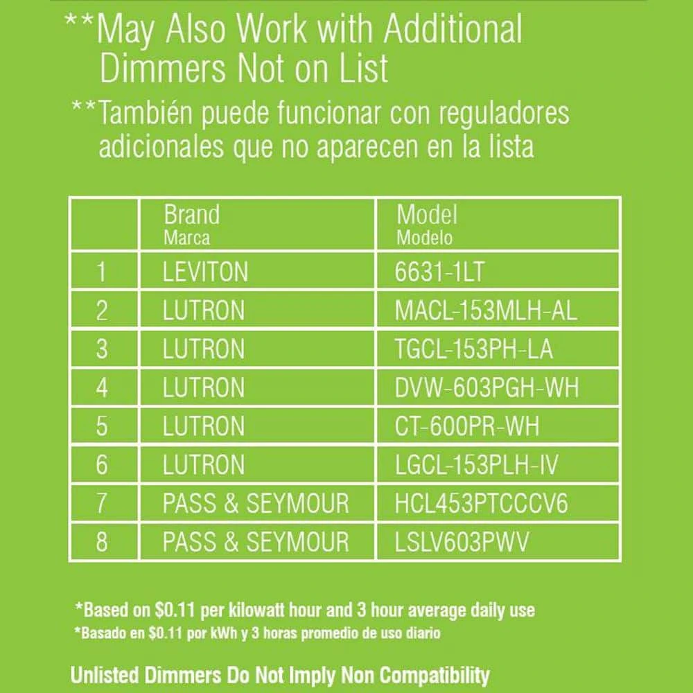 - Compatible with many LED compatible wall dimmers