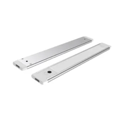 Commercial Electric’s slim-series bar lights are powered by a 2 Amp/48-Watt power adopter and output 600 Lumen of brightness by 2 bar lights. Maximum linkage is 9 bar lights or 12 puck lights (PKL004IS3-UL) of the same series. Warm white (2700K) color temperature and 90 color rendering index (RA). The movement sensor provides a touchless control over the light. Wave your hand to turn the light on or off and hold your hand under the sensor for a couple of seconds to activate the stepless dimming function. Controlling any one light can make all lights in the same linkage work simultaneously. There are 3 optional connections: 40 in. cord, 17 in. cord and direct connector pin for gapless linking. Slim thickness is just 0.26 in. It is user-friendly with the 3 installation ways provided: screws, clip with screws and clip with double-sided tape. The rotatable clip mounting enables the light to adjust to your favorite angle from 0-Degree to 90-Degree. The anodic-oxidated aluminum finish is high-class for any modernized kitchen.