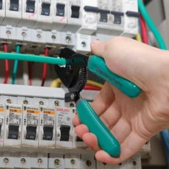 The Commercial Electric Cable Cutter cuts twisted pair and coaxial cable and provides accurate cuts without cable distortion. This tool cuts round so it will not disrupt the geometry or performance of the cable. Constructed of drop forged, high carbon steel and rubber grip handles for comfort and durability.