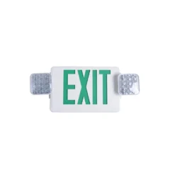 All LED Red/Green Exit Emergency Combo. The Commercial Electric All-LED Exit and Emergency Combination unit is perfect for applications requiring an Exit sign and emergency light in the same area. The High quality LEDs and battery back up make this unit virtually maintenance free. As an added feature this unit is equipped with both red and green stencils to accommodate local code requirements. It can be wall, top or end mounted.