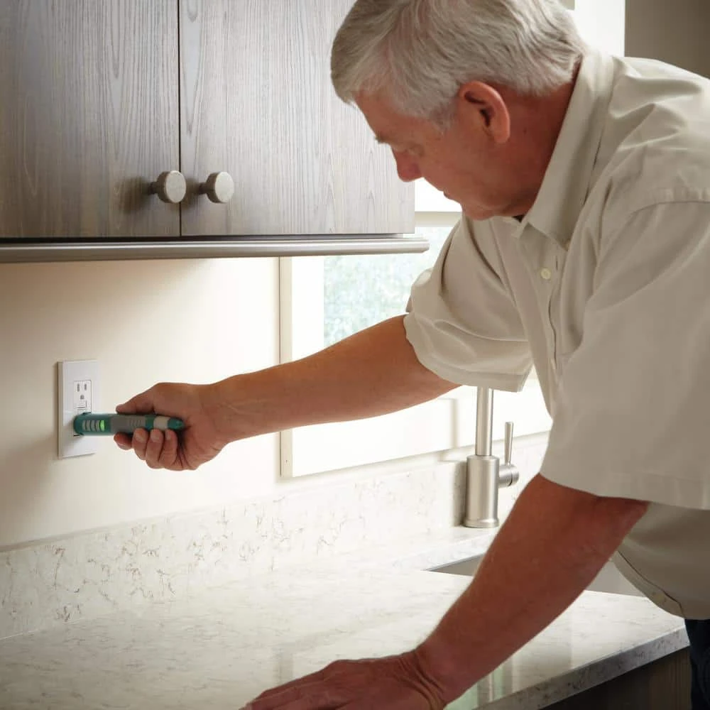 Engineered to specifications required by professional electricians the innovative 2-in-1 DualCheck Tester saves you time and money, while providing quality you can trust. This patent-pending dual-ended tester incorporates 2 of the most popular testers used by electricians, inspectors, technicians and homeowners into a single unit. Engineered with an exclusive design and latest technology GFCI Outlet Tester on one end and a 50-1000-Volt AC Non-Contact Voltage Tester on the other the DualCheck quickly provides an accurate analysis of any 120-Volt receptacle. The Non-Contact Voltage Tester detects 50-1000-Volt AC and features a bright 360° LED visual indicator along with an audible beeping indicator of the presence of voltage. On the other end our best-in-class GFCI Outlet Tester features a clear and easy-to understand single LED readout indicating Correct wiring or Open Ground, Open Neutral, HOT/GND Reverse, HOT/NEU Reverse and Open Hot wiring errors without the need to memorize or interpret a chart. Designed for the jobsite this tester features Hi-impact ABS housing with a 250 lb. crush rating and the ability to withstand drops of up to 10 ft. Conceived with long workdays in mind this unit also offers over-molded grips to ensure user comfort during repeated or prolonged use. Backed by a lifetime warranty this tool will take up less space in your toolbox and increase your productivity for years to come.