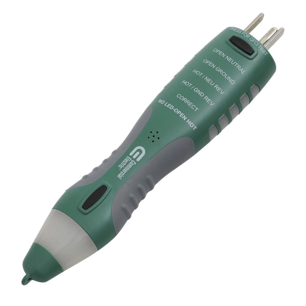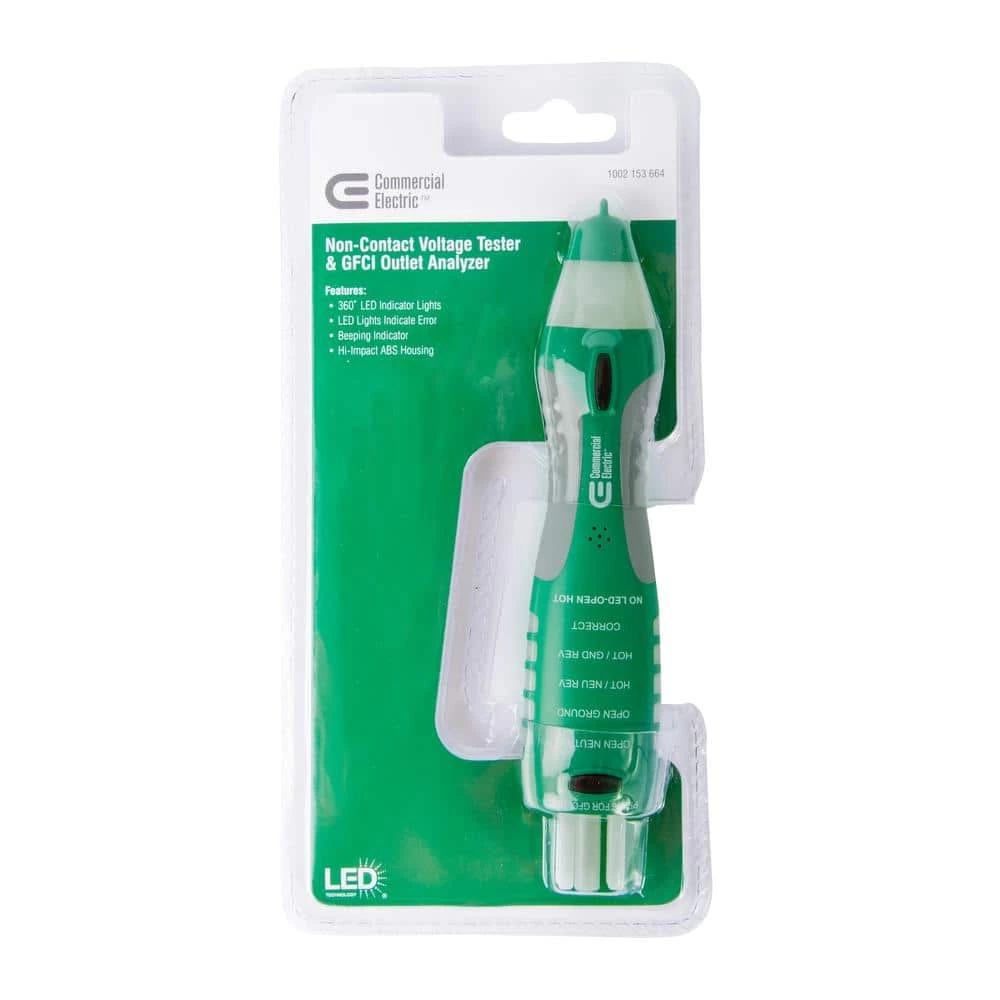 - Save time and money with 2 popular testers in 1 unit featuring a non-contact voltage detector on one end and GFCI outlet tester on the other