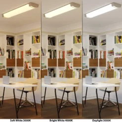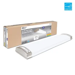 The Commercial Electric 4 ft. Moroccan Series Color Selectable LED Decorative Ceiling Flush Mount Light provides a timeless, yet traditional low profile design that’ll complement or enhance similar decor and styling while providing bountiful 4000 lumen output for your any room in your home or office. Damp-rated makes it ideal for the kitchen, bathroom, laundry room, bedroom, basement and more. The long-lasting, ENERGYSTAR certified LED technology provides light output equivalent to 96 watts while using less energy for year-round savings. And it’s maintenance free with no light bulbs to change. The selectable color temperature feature allows you to choose your preferred light color: soft white, bright white or daylight (3000K/4000K/5000K) to fit your space and needs. It also accepts a TRIAC LED wall dimmer so you can have countless options at your fingertips to create the ideal lighting experience for any occasion. Piece of mind comes with knowing there’s a 5-year warranty and a rated life of 50,000-hours of continuous use. You’ll also enjoy a light that’s easy to install. It includes all hardware and features a patented install kit that supports time-saving, hassle-free one person installation perfect for the DIYer and PRO.
