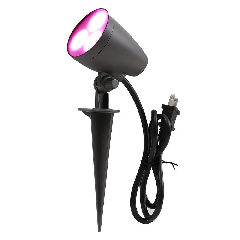 Commercial Electric LED Plastic RGW Color Changing Spike Light is not just for everyday use, it also use as festive decoration light. The 3-Watt 250 Lumens (40-Watt) fixture luminate with soft warm white light and have the option of Red, Green and flashing light alternating in Red, Green and White. Simply push the button at the back of the light for each pre-set function and it will stay at the selected settings until it get alter again.