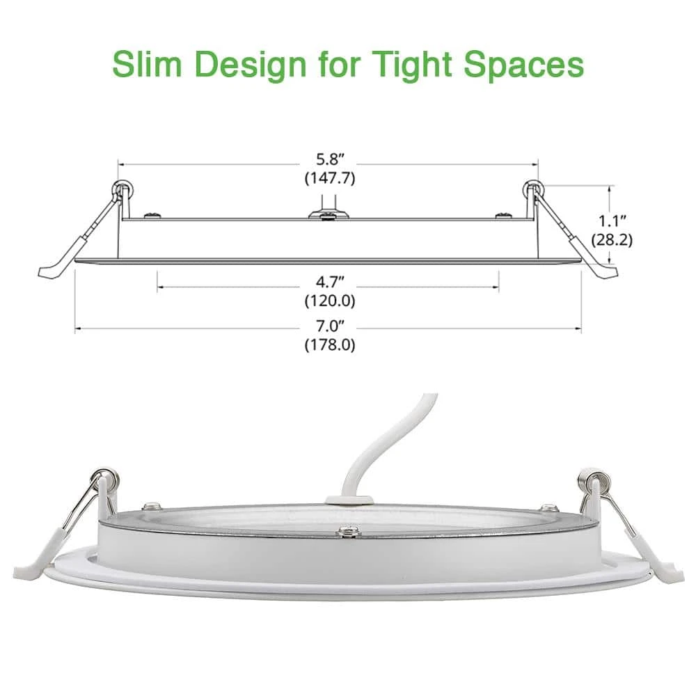 Commercial Electric’s 6 in. Canless Ultra Slim Integrated LED Recessed Downlight with multiple light output options is one of the most innovative and simplest ways to upgrade your existing recessed lights to energy-efficient LEDs. This innovative fixture offers unique features than any light on the market! The canless, ultra slim design is the wave of the future; no need for cans or joist; easily installs into low clearance or sloped ceilings. Prior to installation, choose between (5) color temperatures of light output: 2700K Warm White, 3000K Soft White, 3500K Cool White, 4000K Bright White or 5000K Daylight. It emits 900 Lumens of brightness using only 15-Watts of electricity. It is easy to install, long-lasting and maintenance free with no bulbs to replace. Ideal for kitchen, bed/bathroom, pantry, entry way, hallway, stairwell, basement, sun room, covered patio or deck, office, retail shops or lobby.