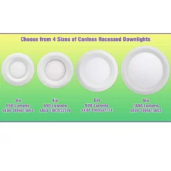 Commercial Electric Ultra Slim 6 in. Canless LED Recessed Downlight is one of the most innovative and simplest ways to upgrade your existing recessed lights to energy-efficient LEDs. Ideal for new construction retrofit mounting and wet rated offers many possibilities for lighting layout planning. The canless, ultra-slim design is the wave of the future; no need for cans or joist, easily installs into low clearance or sloped ceilings. Prior to installation, you choose between (5) color temperatures of light output for your space, Warm White, Soft White, Cool White, Bright White or Daylight and you can change your mind anytime. It is easy to install, long-lasting and maintenance free with no bulbs to replace. Suggested applications: kitchen, family room, living room, entry way, hallway, bathroom/shower, bedroom, basement, office, retail shops, theatres, lobby/reception areas and more.