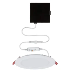 The Commercial Electric Slim Color Selectable Recessed Lighting Kits are the recessed lights of the future. Not only is each fixture is designed specifically for small spaces where height clearance is limited such as beams or ductwork, you can change the color temperature with a flick of a button. The integrated color changing switch is located on the cable so you can choose between a 2700, 3000, 3500, 4000 or 5000 Kelvin temperature to best suit your needs. 2700 or 3000 Kelvin is perfect for relaxing, 3500 or 4000 Kelvin is the ideal choice for everyday affairs and 5000 Kelvin is great for task lighting in a basement, hallway or work area. ENERGY STAR certified and IC rated for direct contact with insulation, these lights won’t overheat, do not require a bulky can and will last for-years to come – 50000-hours or approximately 34-years if used for 4-hours per day to be exact. Wet rated and certified airtight, this 6 in. kit is perfect for your bathroom, drop ceilings, outdoor soffits, larger spaces and all general lighting applications.